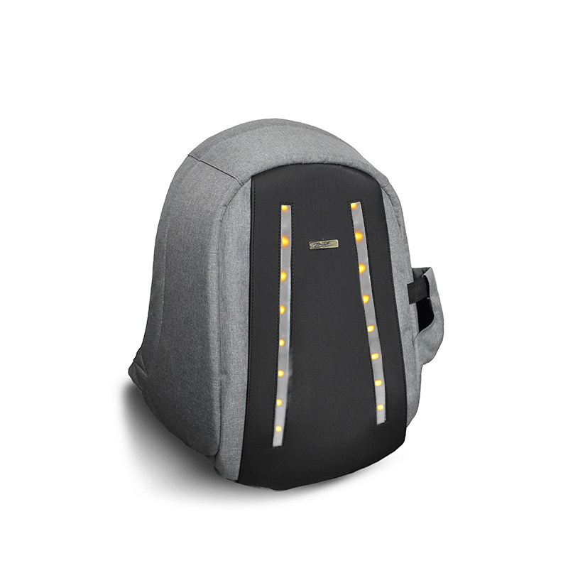 Su diseño antirrobo con estructura semirrígida y cremalleras ocultas mantiene tus pertenencias seguras, mientras que la tecnología de luces LED integradas aumenta tu visibilidad y seguridad en la vía.