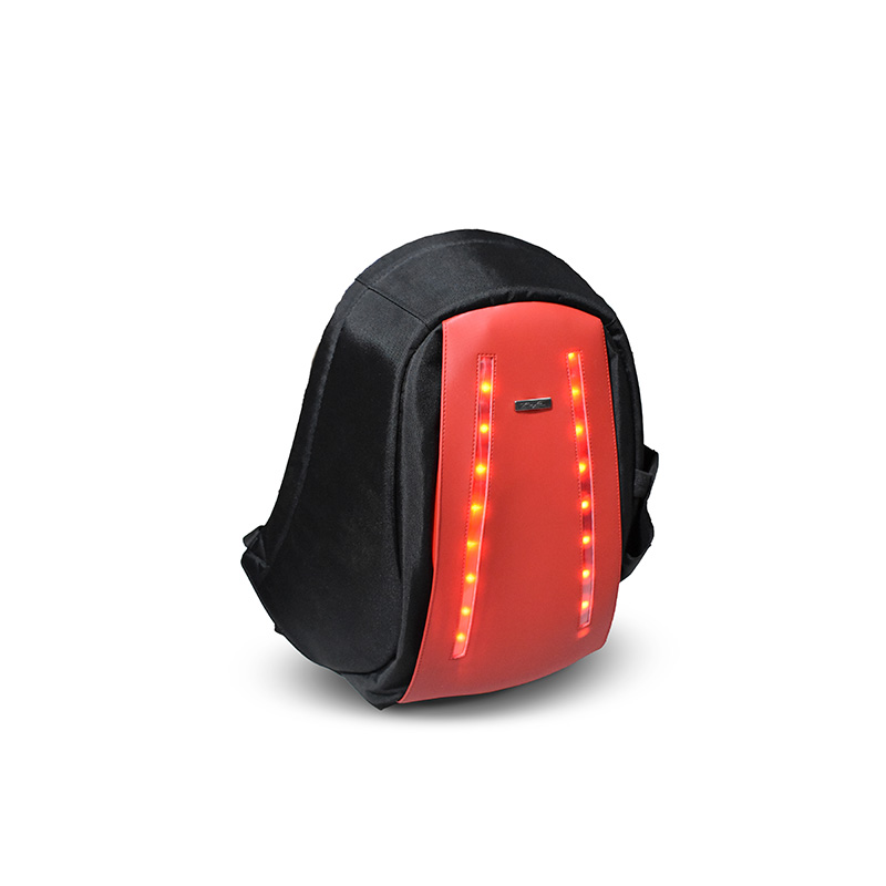 Su diseño antirrobo con estructura semirrígida y cremalleras ocultas mantiene tus pertenencias seguras, mientras que la tecnología de luces LED integradas aumenta tu visibilidad y seguridad en la vía.